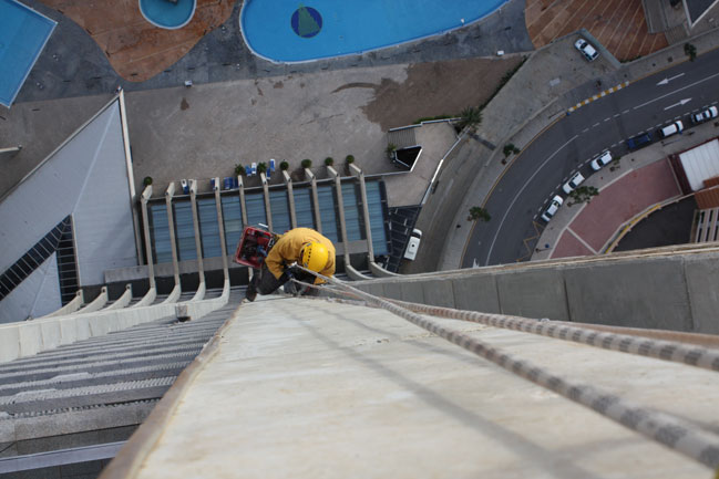Seguridad. - No somos “acróbatas”, ni realizamos trabajos de “alto riesgo”, más bien todo lo contrario: acometemos con total seguridad trabajos tradicionalmente arriesgados. La elección de los materiales y equipos adecuados, el profundo conocimiento de su uso (a través de una concienzuda formación), y la planificación y seguimiento exhaustivo de cada uno de los trabajos, nos permite alcanzar unos estándares de seguridad difícilmente imaginables.